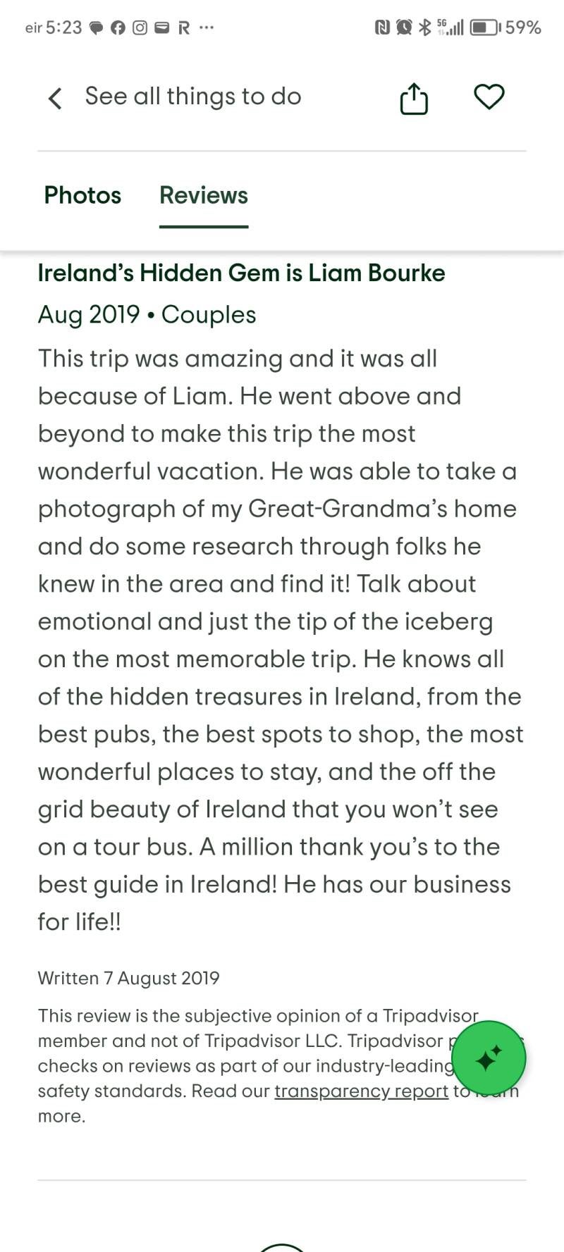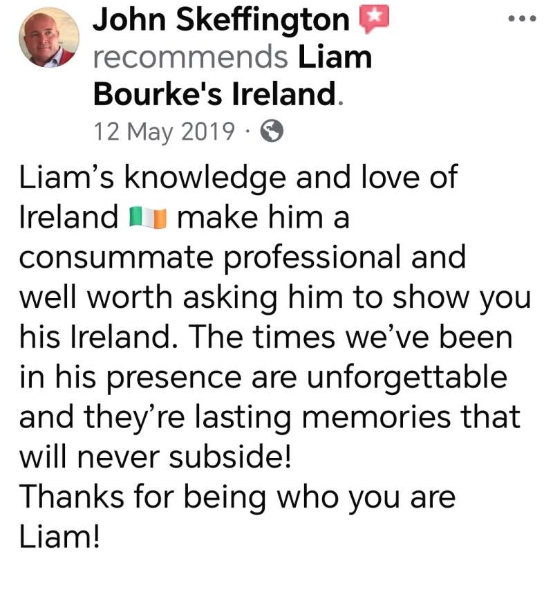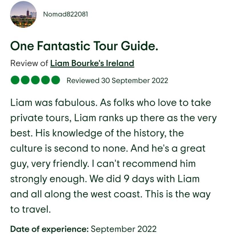"Liam's knowledge of Irish history and culture is incredible. He made the past come alive for us. A truly exceptional tour guide!"